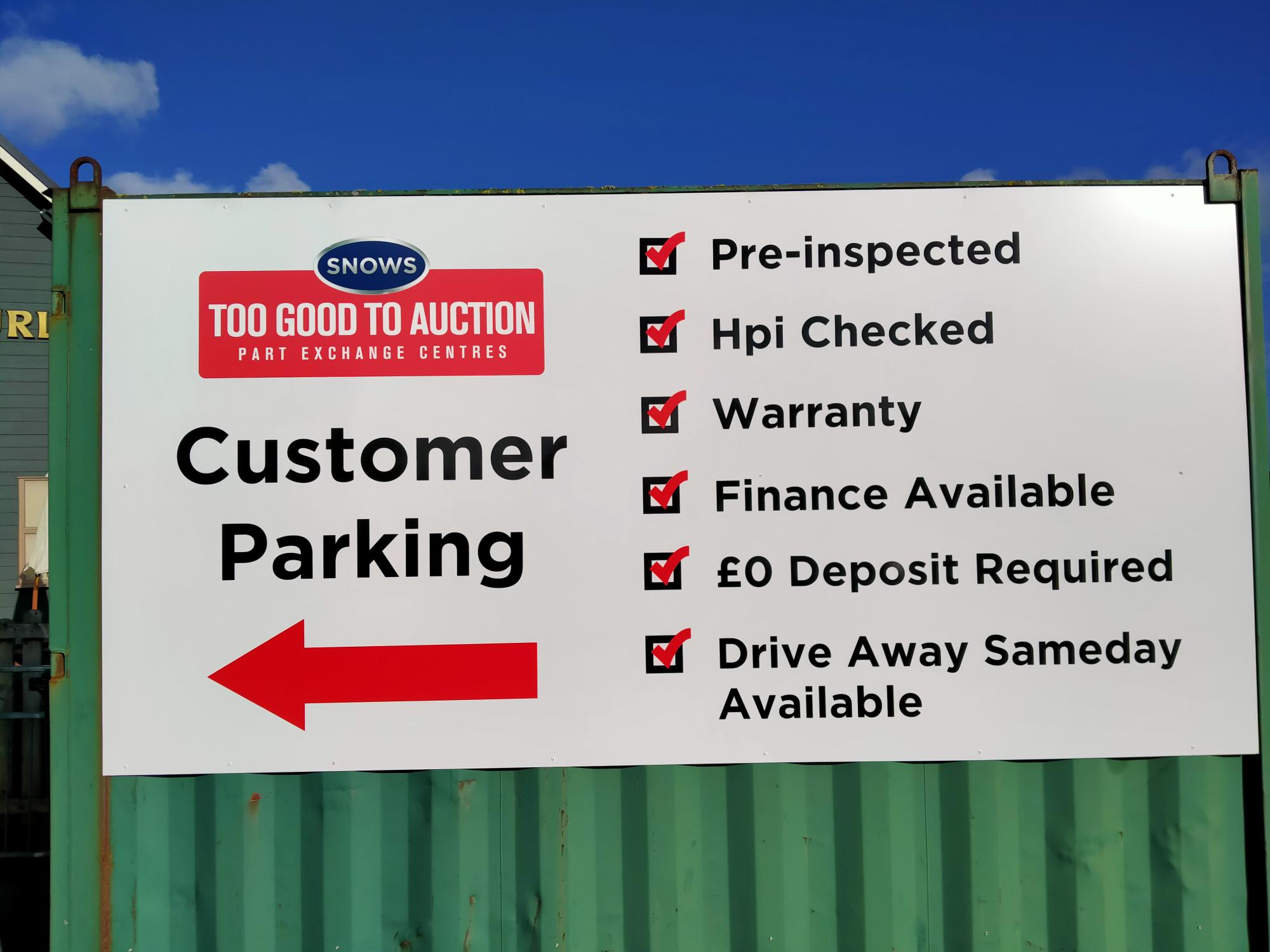 Went looked at the car on Sunday , such helpful guy, let my son take it for test drive , went back on the Monday see another nice guy, brought the car , so very helpful explained all , car picked up today with new service one happy son , would recommend Snows Too Good To Auction, all very helpful & pleasure to deal with